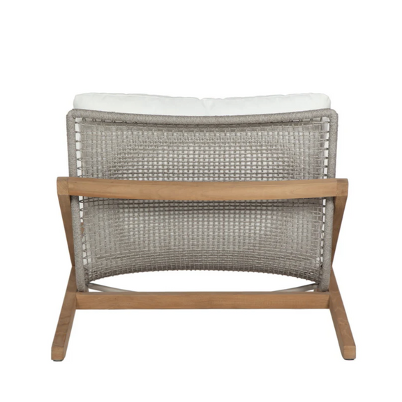 This timeless lounge chair from our Outdoor by SUNPAN collection will transport you to a relaxing outdoor retreat. Crafted with a natural teak wood frame, greymix weave seatback and stinson white fabric seat, this piece creates a stylish and modern look. Suitable for indoor and covered outdoor spaces.