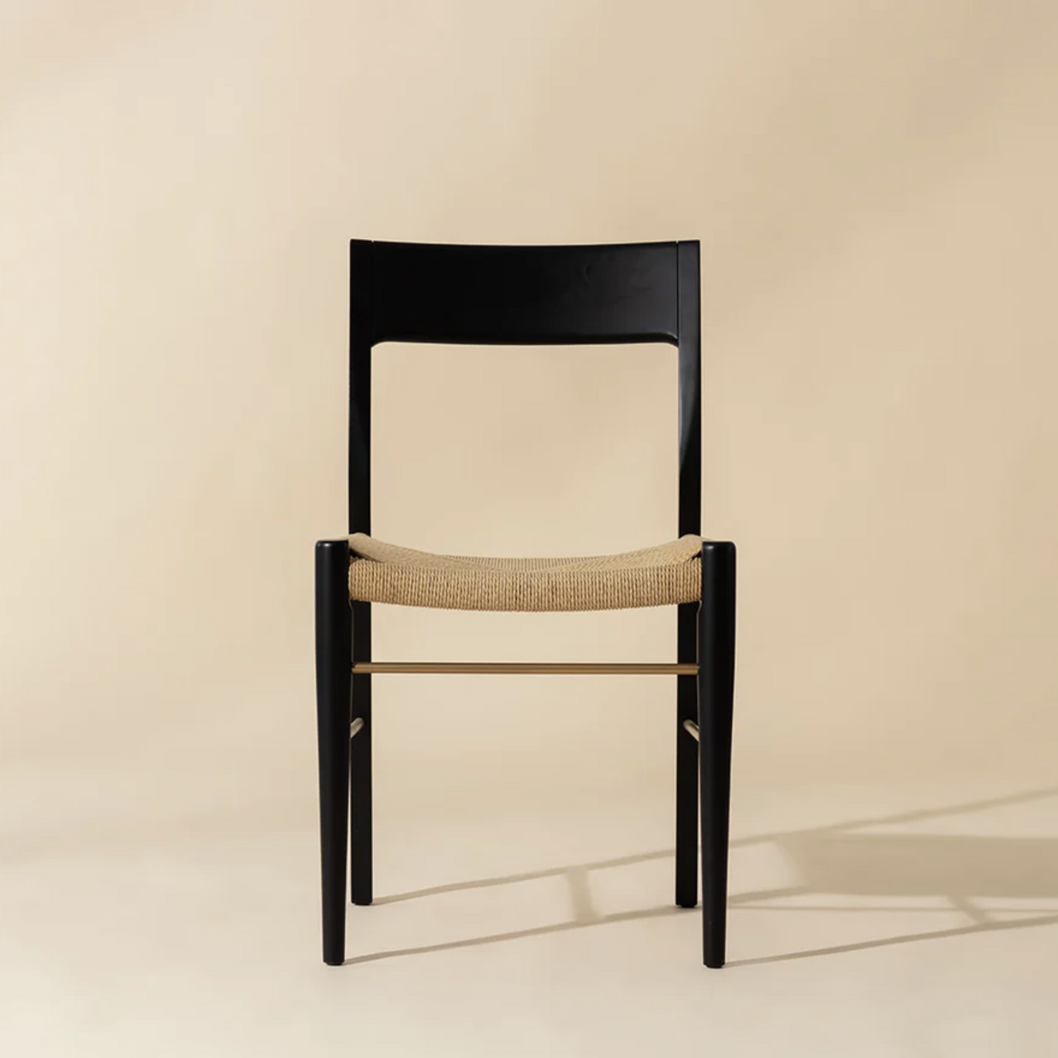 This modern take on a classic dining chair design offers timeless style for any space. Features a black beech timber wood frame with a natural rope seat. Due to the natural contents of natural paper rope, it is advised to minimize contact with strongly dyed fabrics to avoid discolouration and/or colour transfer. As wood is an organic, porous material, these pieces will contain natural variations of texture and may also exhibit fine indentations and cracks. Wood pieces will also display a disparity of colour and grain, and visible knots and burls that add to the character of each piece.