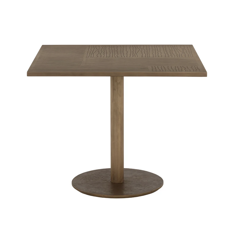 Globally inspired with a modern design, the Corina Bistro Table will accentuate any dining space. Handcrafted from iron with an antique brass finish. Features a square tabletop etched with an artisanal design. Made in India. With refined craftsmanship, this design was brought to life by skilled local artisans. Due to the nature of handcraftsmanship, unique imperfections such as fissures, markings and variations in color and shape are welcomed and appreciated characteristics for a truly one-of-a-kind piece.