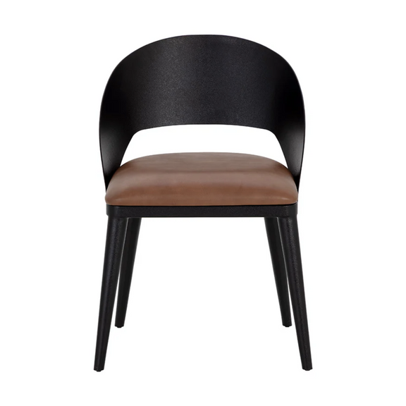 The Dezirae Dining Chair features a sleek profile with a strong curved back for a stylish design that will fit into any dining space. The legs and headrest are beautifully crafted from black textured powder-coated iron. A cognac leather seat adds an alluring contrast to round out the look. Handle with Care: This design has been crafted with 100% top grain leather. Leather is a natural material; as such, colour variations, markings, wrinkles, grooves and light scratches are acceptable and appreciated characteristics. No two pieces are alike. Made in India. With refined craftsmanship, this design was brought to life by skilled local artisans. Due to the nature of handcraftsmanship, unique imperfections such as fissures, markings and variations in colour and shape are welcomed and appreciated characteristics for a truly one-of-a-kind piece.