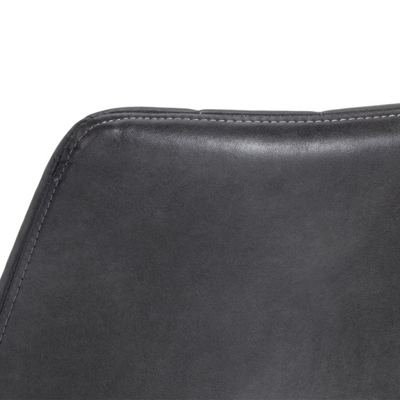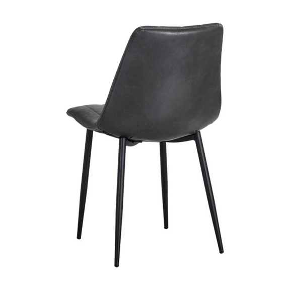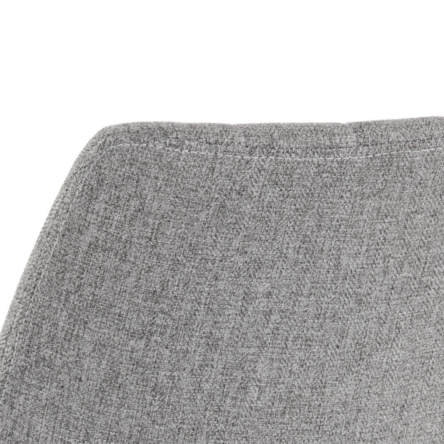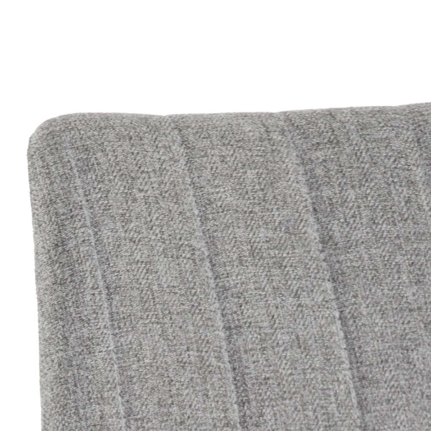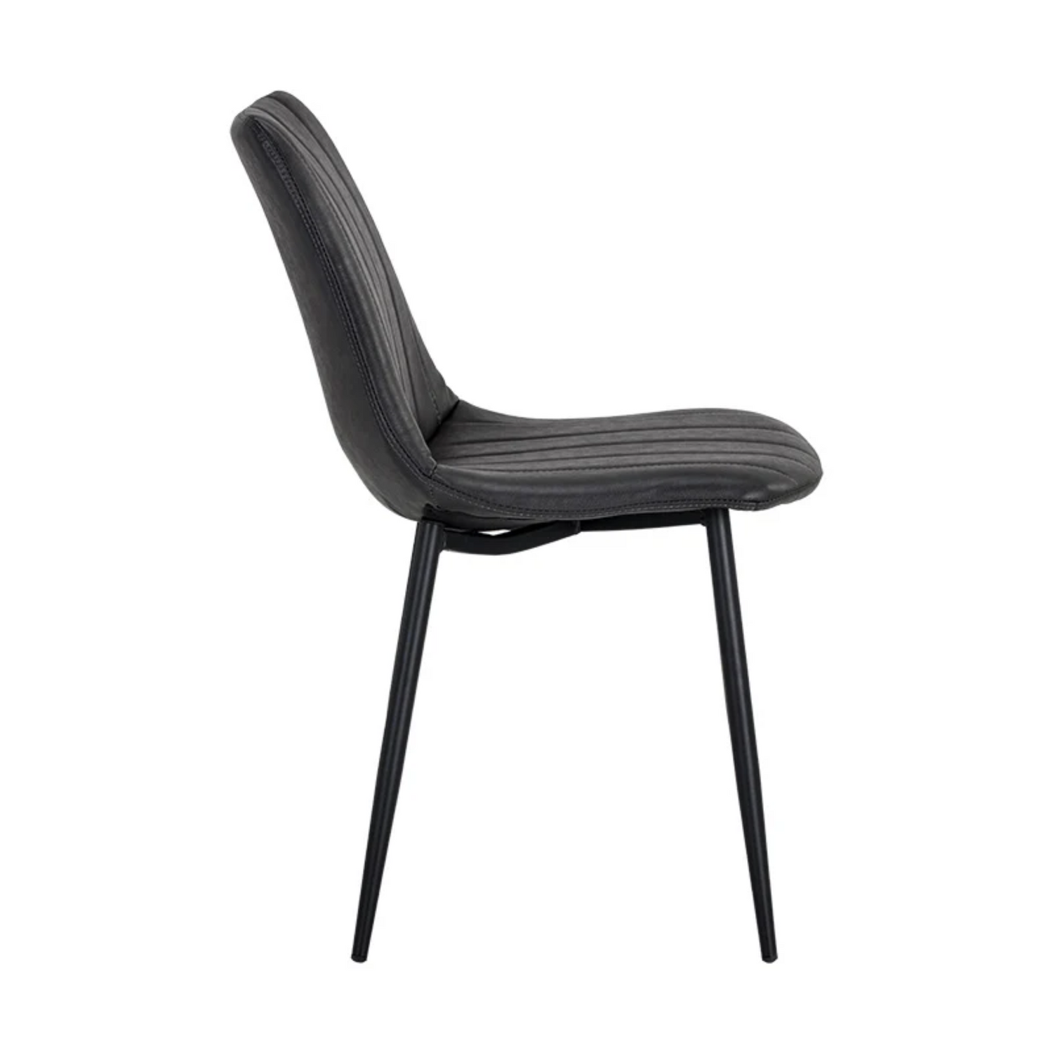 This compact dining chair creates a cool and casual mood. Features channel tufting on the seat and seatback. Stocked in light grey fabric with a black powder-coated steel frame.