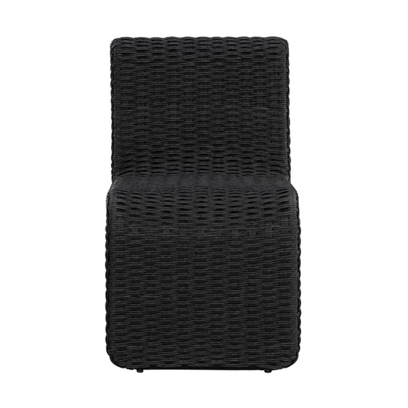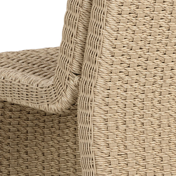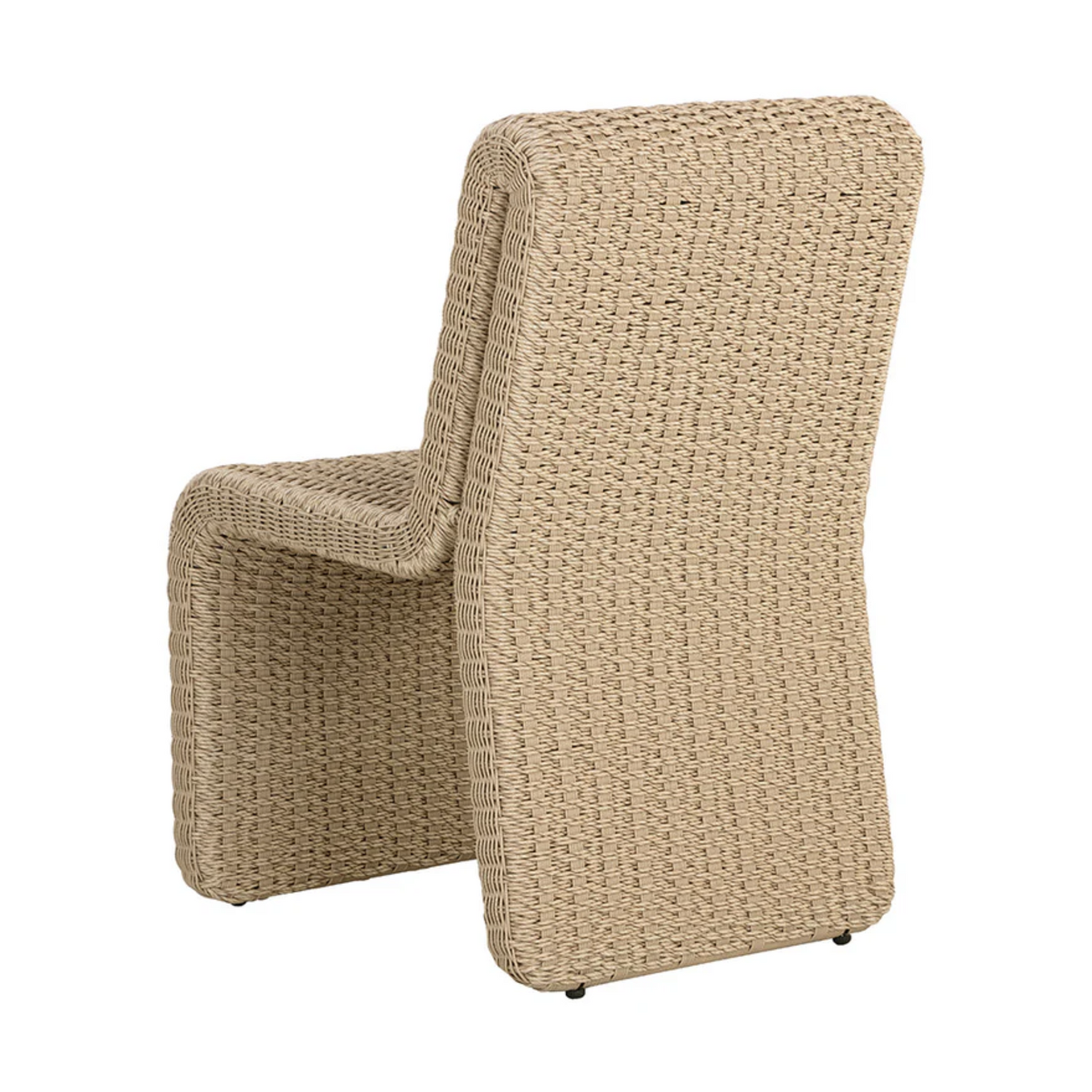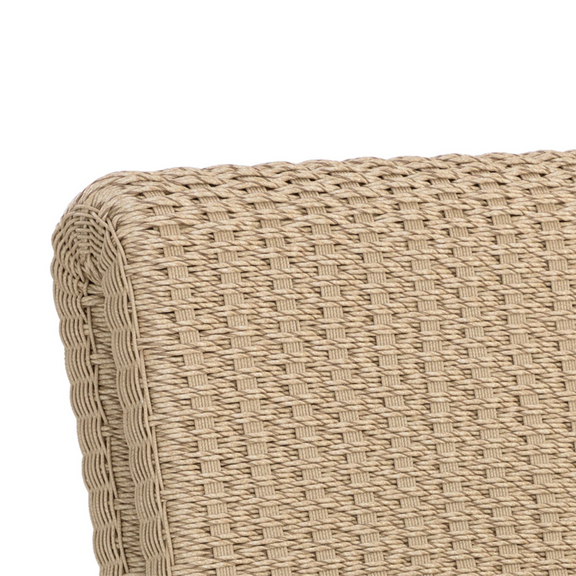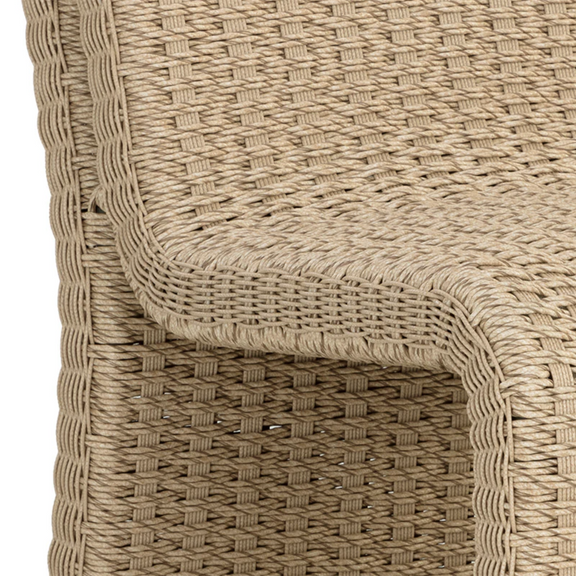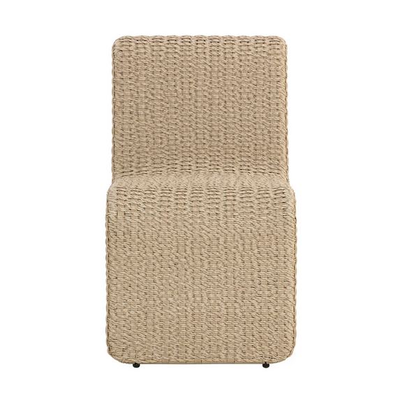 The Edessa Dining Chair features a modern armless silhouette with alluring curves that create its cascading shape. Twisted wicker in a natural finish is weaved around an aluminum frame to give this dining chair a light and airy feel. Dine al fresco in style.