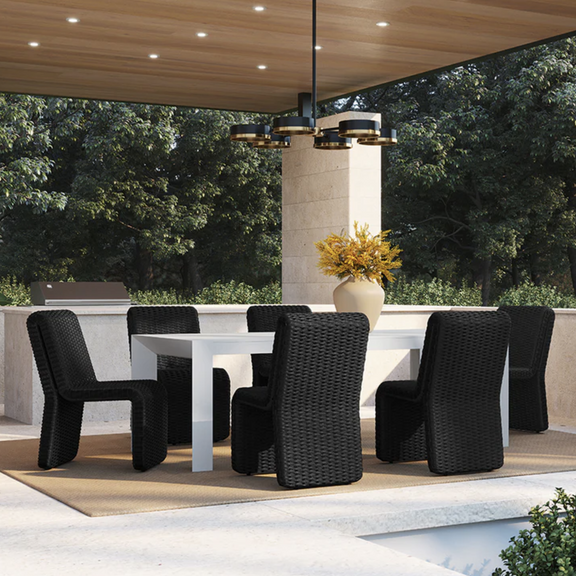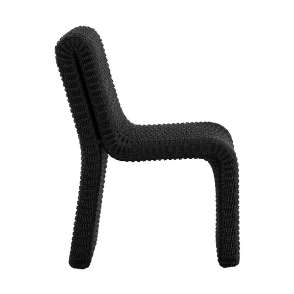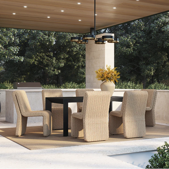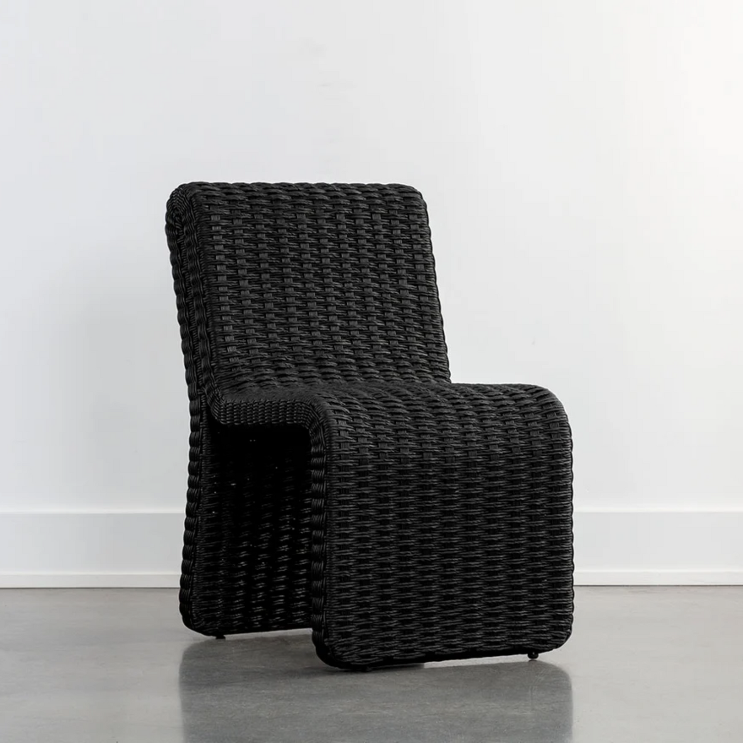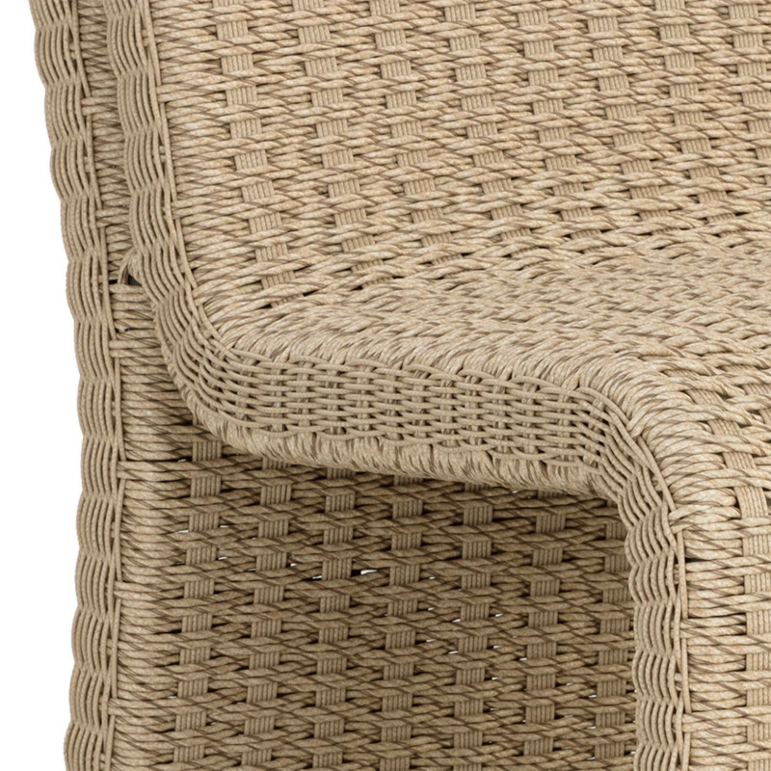 The Edessa Dining Chair features a modern armless silhouette with alluring curves that create its cascading shape. Twisted wicker in a natural finish is weaved around an aluminum frame to give this dining chair a light and airy feel. Dine al fresco in style.