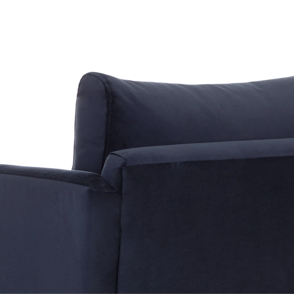 Modern with a refined silhouette, this comfortable swivel lounge chair is designed for relaxation. Upholstered in abbington navy fabric and completed with a black powder coated steel base. Also available in dream pina colada performance fabric and nepal cashew fabric.