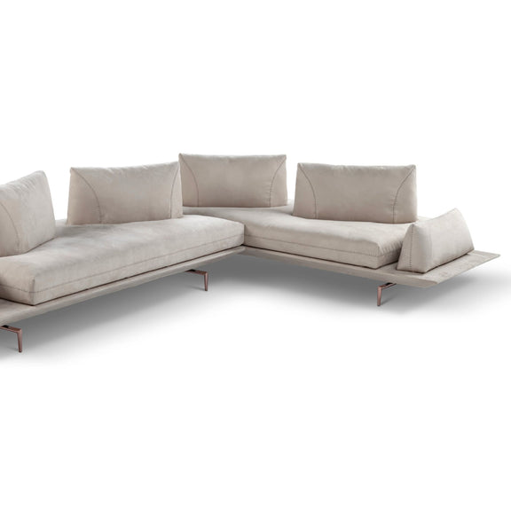 Gianduiotto is a deconstructed sofa, designed to create informal moments of total relaxation. The base, which characterizes the entire collection, represents the tray on which the seat rests. The back cushions recall the shape of chocolates and, like the seat, are embellished with a decorative stitching effect. Soft and cosy padding completes the comfort experience of the model. A true Italian experience.