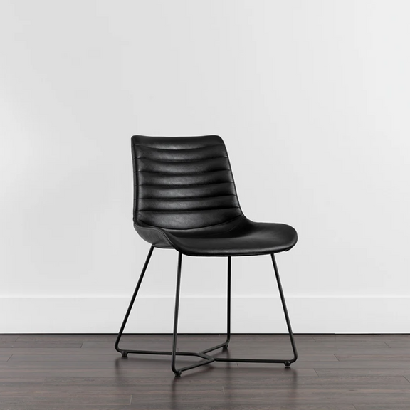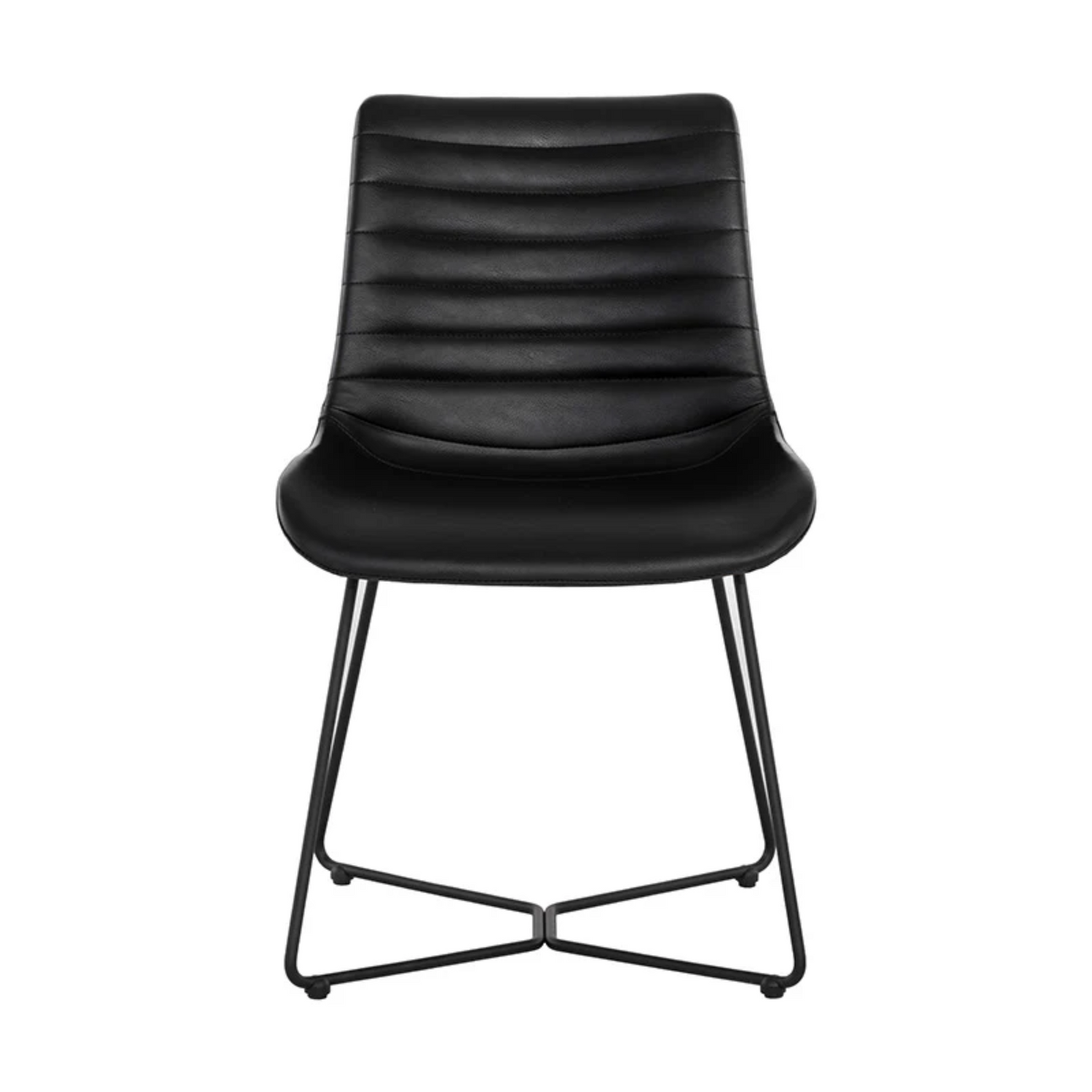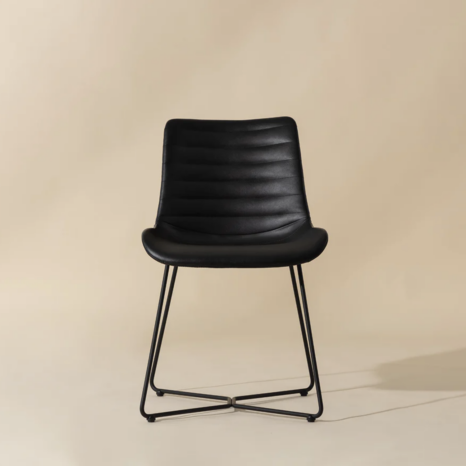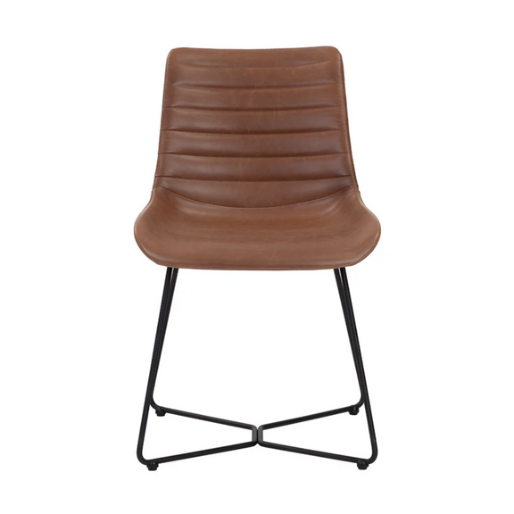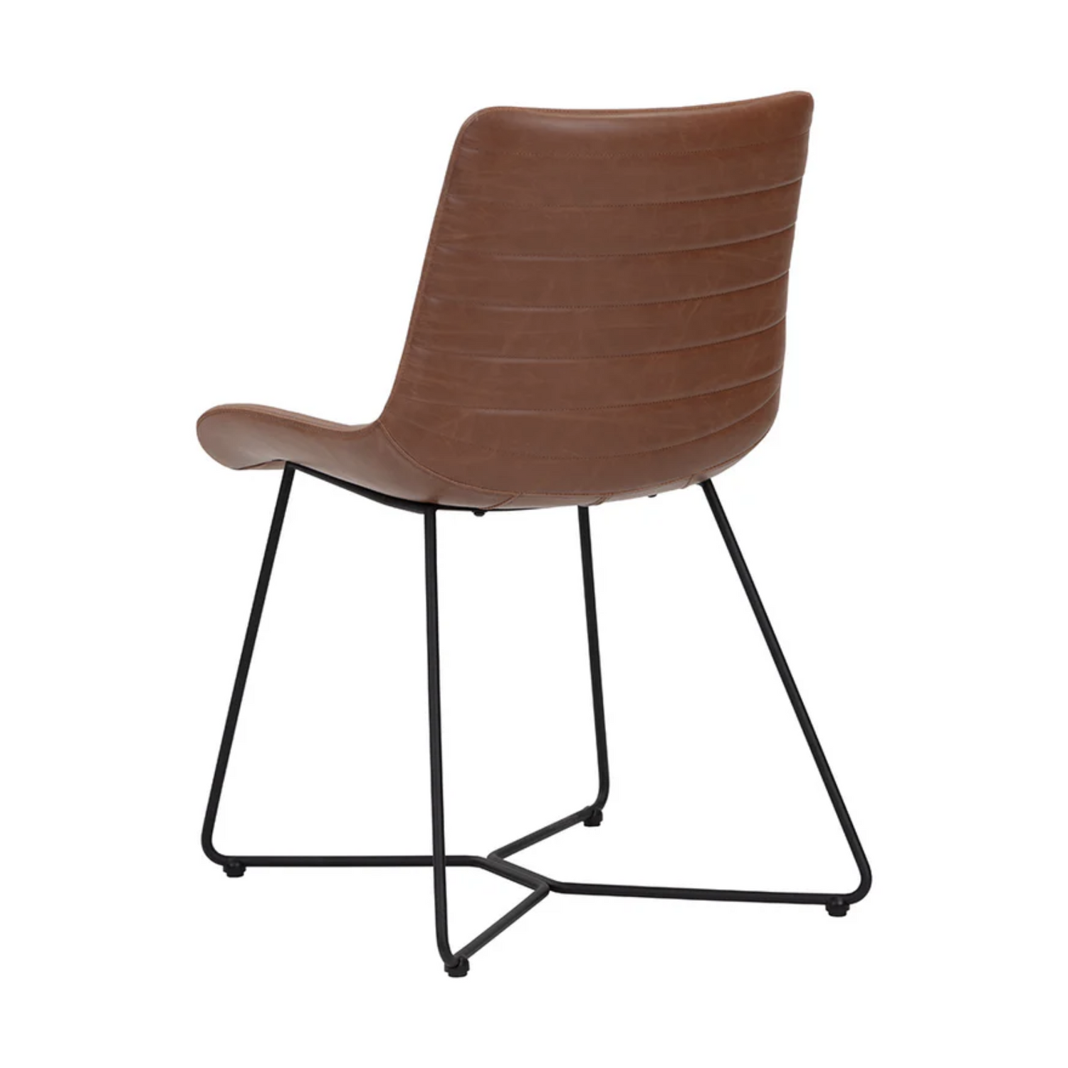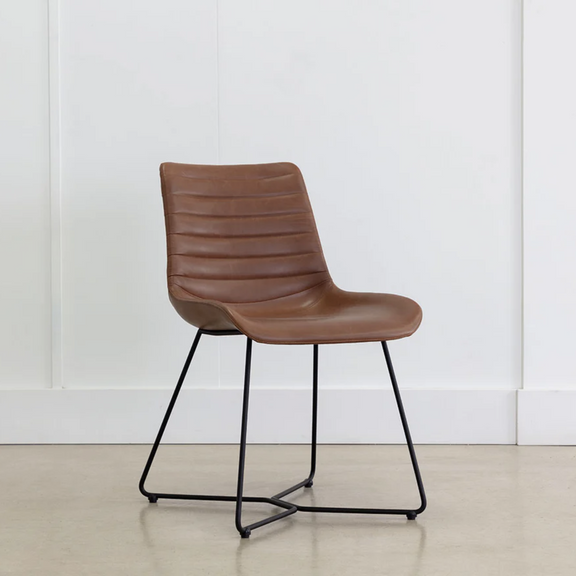 With an understated design, this minimalist dining chair demonstrates the beauty of simplicity. Stocked in hazelnut faux leather and completed with powder-coated metal legs in a matte black finish. Handle With Care: This design has been crafted with faux leather. Faux leather is manufactured to reflect the natural characteristics of leather; as such, colour variations, markings wrinkles, grooves, and light scratches are appreciated characteristics. No two pieces will be alike.