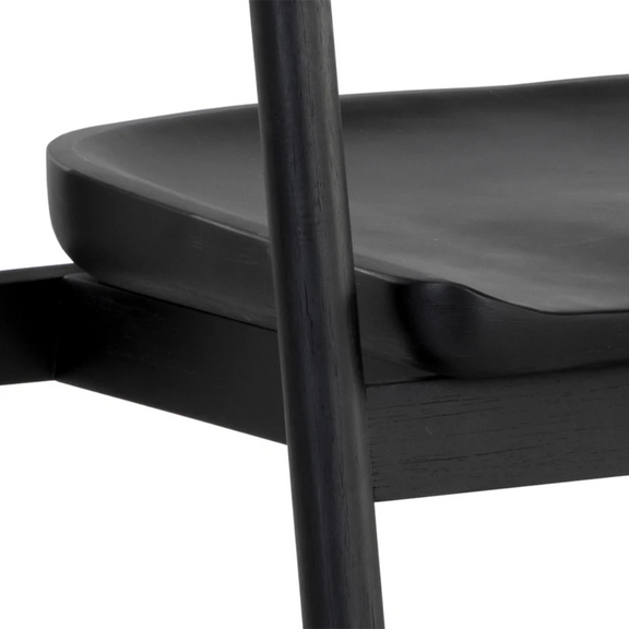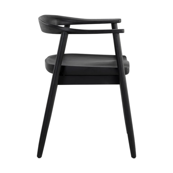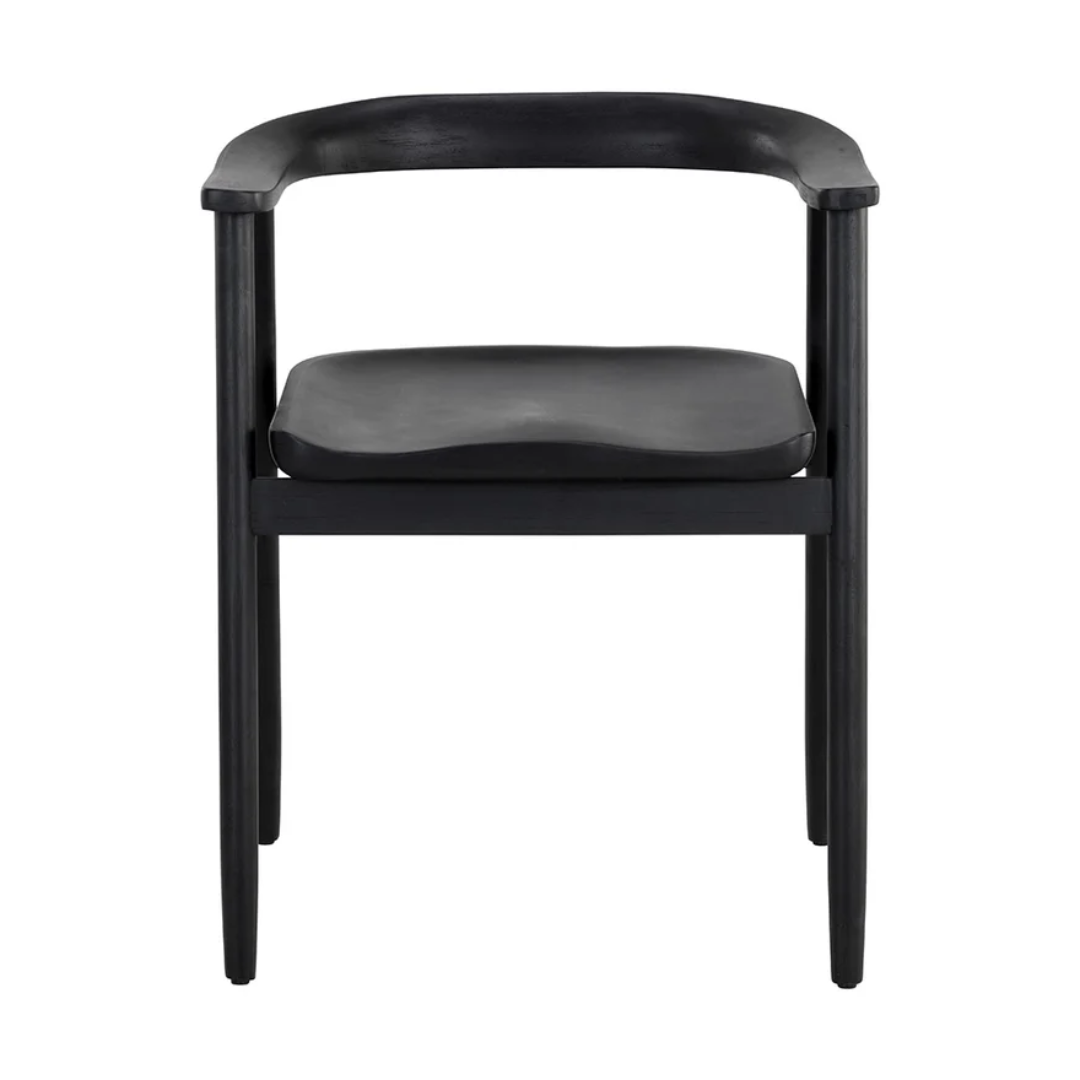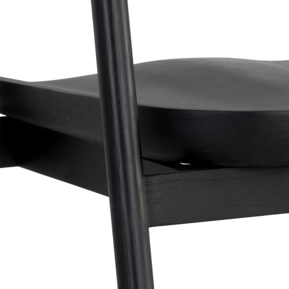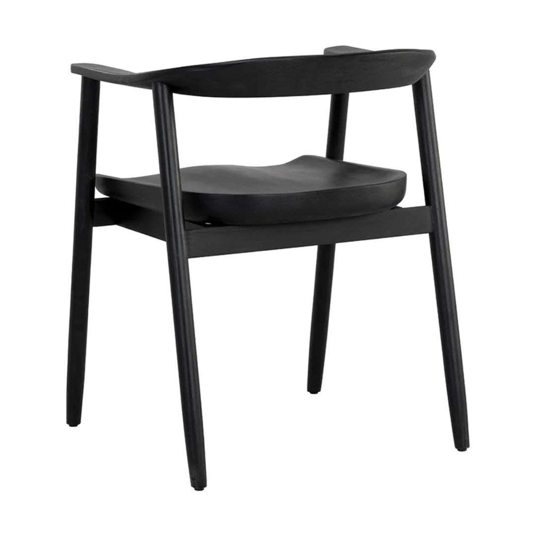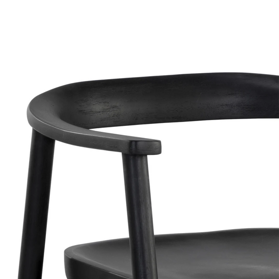 An alluring mid-century dining armchair that embraces the beauty of simplicity. Expertly crafted from black acacia wood for a sleek look. As wood is an organic, porous material, these pieces will contain natural variation of texture and may also exhibit fine indentations and cracks. Wood pieces will also display a disparity of color and grain, and visible knots and burls that add to the character of each piece.
