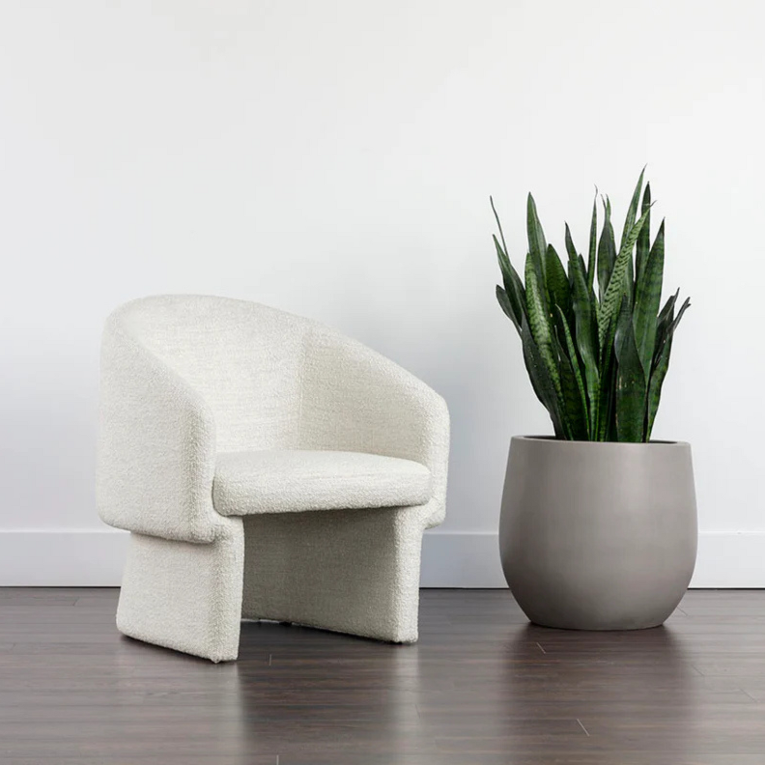 Make a statement with this contemporary lounge chair crafted in Vietnam. Features a modern barrelback seat in danny amber fabric. A perfect addition to living, lounge and lobby environments.