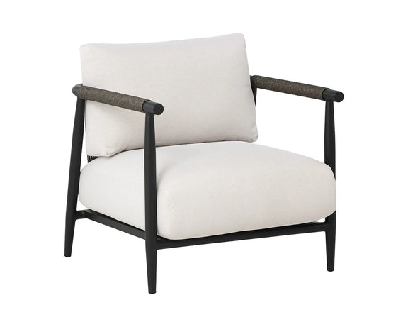 Sleek and thoughtful, the Muros Lounge Chair is an ideal choice for your outdoor space. An all-weather black aluminum frame showcases a beautiful faux rattan waterfall back design with clean lines and luxurious cushions covered in palazzo cream fabric.
