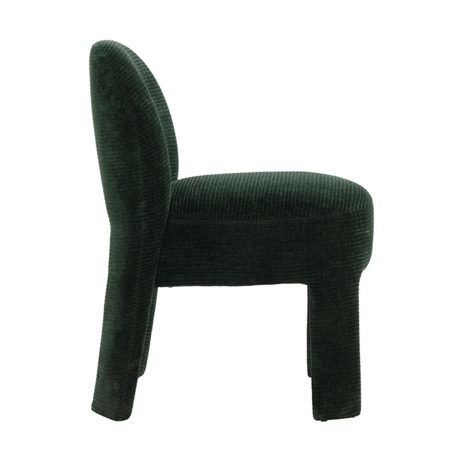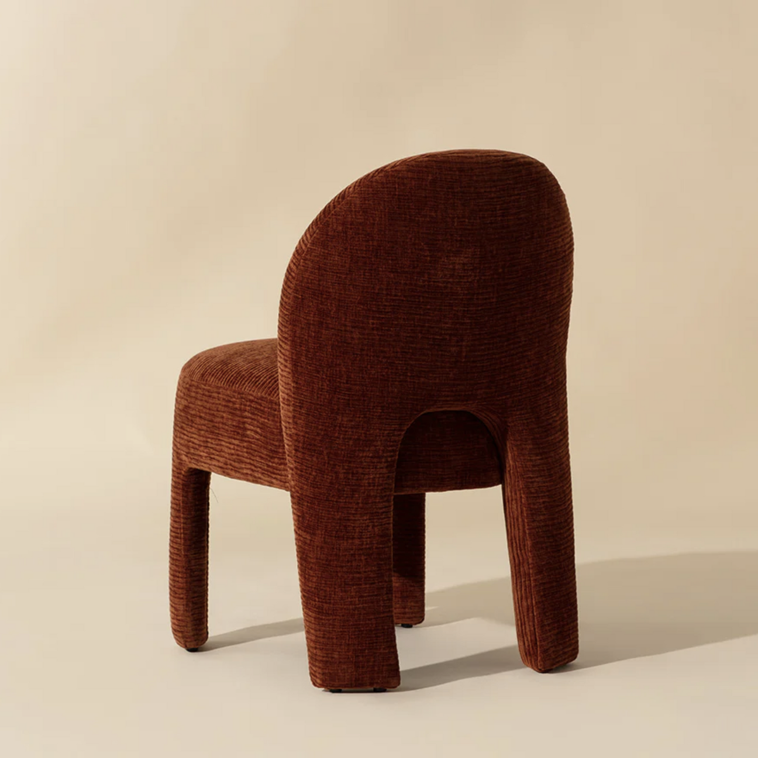 Enjoy the trendy and plush lines of the modern Myrtle Dining Chair. Artfully upholstered in rich textured opera spice performance fabric, this masterfully-built dining chair is a true meeting of style and comfort with its sleek and modern curves and contours.