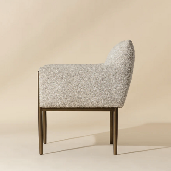 The Olea Lounge Chair is the masterful union of mid-century technique and contemporary ease. Versatile enough to accompany any space and boasting a charming silhouette with bronze powder-coated steel legs that emphasize the plush texture of santa cruz oatmeal fabric.